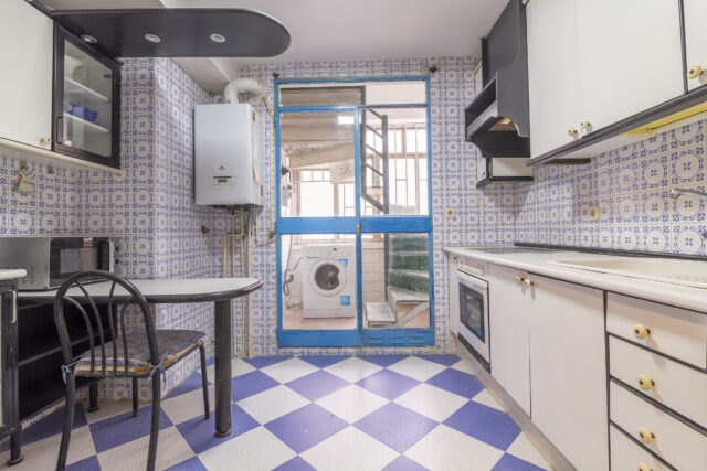 Cocina completa, con acceso al tendedero y la escalera para subir a la parte superior del inmueble.