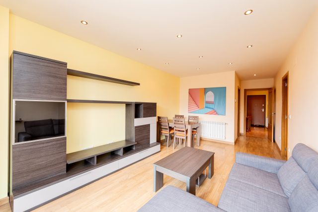 Con una superficie distribuida en tres habitaciones y dos baños, este piso está diseñado para maximizar funcionalidad y confort. El salón-comedor es muy luminoso gracias al ventanal del que dispone.